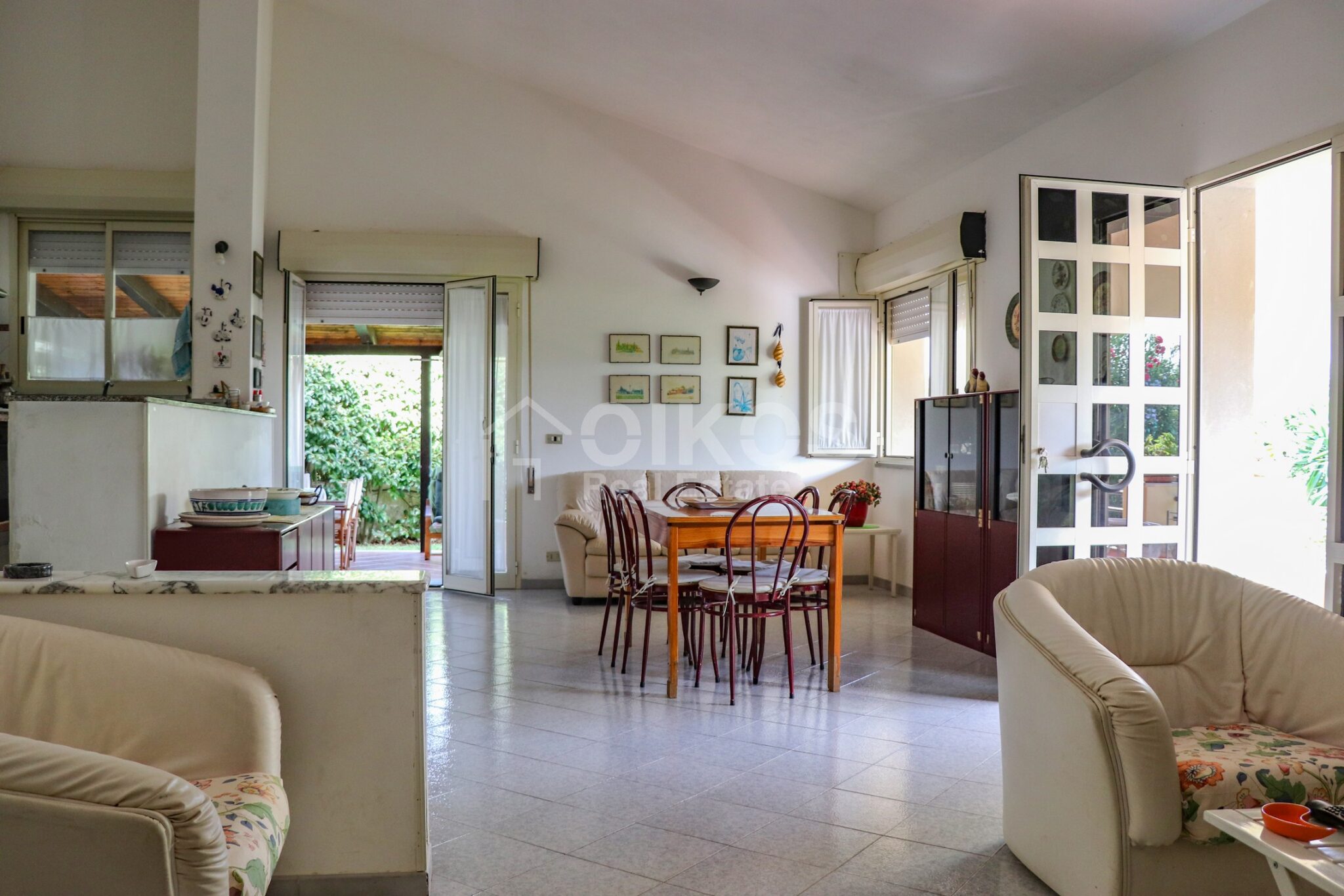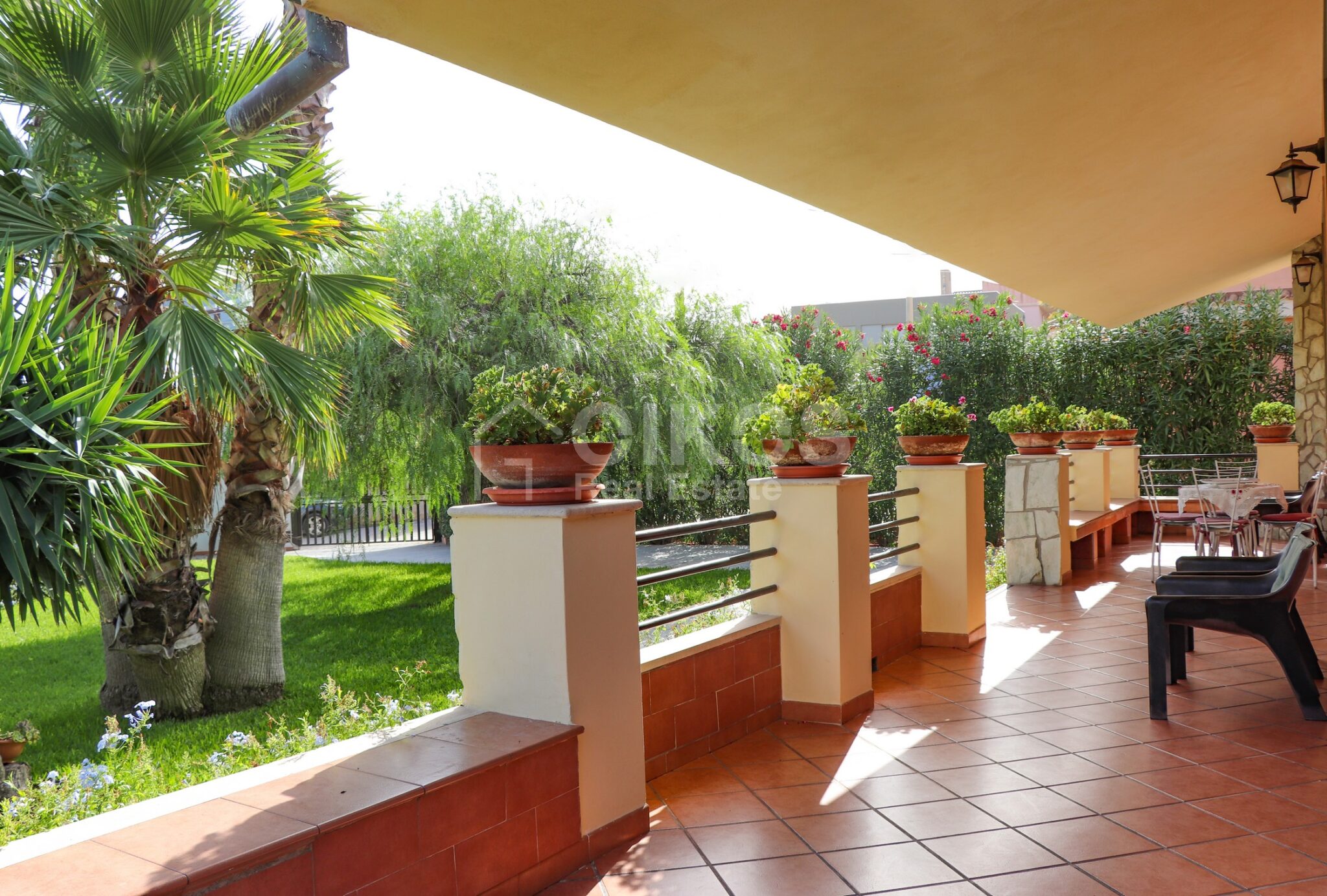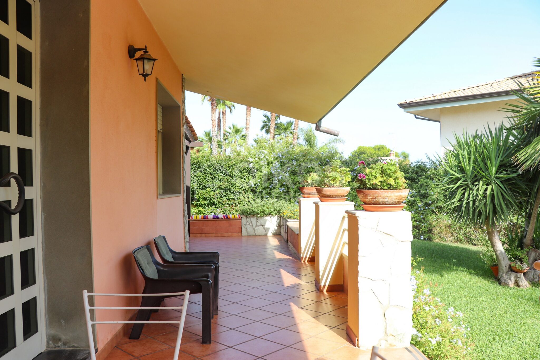 The villa with garden is located in the district of Falconara, a few steps from the sea. The property, with an area of about 114 square meters, is located entirely on the ground floor and includes 5 rooms. Inside, the property offers a spacious living area with open kitchen, two cozy bedrooms, a practical laundry room and a bathroom. The room is air-conditioned, ensuring comfort in every season. Outside, the villa has a large veranda covered by an elegant wooden roof, ideal for outdoor dinners with friends and relaxing moments. From the veranda you can enjoy the view of a beautiful and well-kept garden, adorned with a willow, palm trees and other shrubs, all framed by the bright colors of oleander flowers.